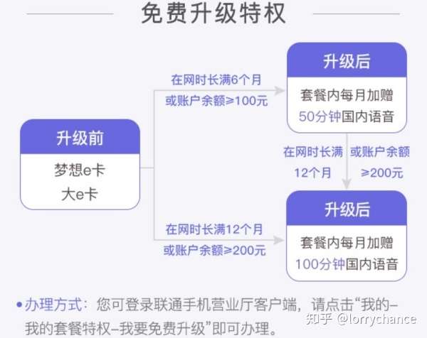 小提示:现在三家运营商都可以老号转套餐了。喜欢某款套餐,就可以致电运营商客服(联通10010/电信10000/移动10086)要求更改了(可能会提示你去几个指定营业厅办理)。老号转套餐无法享受首充优惠和开卡送的资源(如“激活送1GB,半年有效”或“前6个月每月送100分钟”),但套餐内资源和免流权益是一致的。而且在网满期升级是从老号最初入网日期计算的。比如多年的联通号码转成腾讯大王卡,转换生效后就可以直接申请升级全国日租1元1GB,不用再等一年或充值300元了!