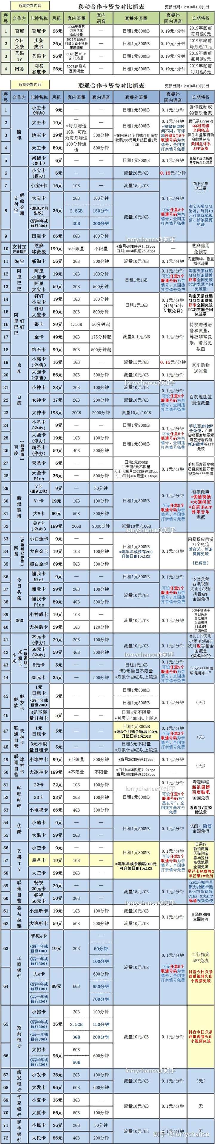 8月25日更新:联通9元1GB的连尚万能金卡增加新浪微博免流,天神卡可添加3个亲情号;收录移动网易态度卡,补充移动各合作卡的返费政策;收录联通怪兽充电电力卡、vivo v粉卡联通版、华为花粉卡联通版、华泰证券乐享卡;收录电信中国好声音卡;更新北京电信2018校园套餐正式版内容。