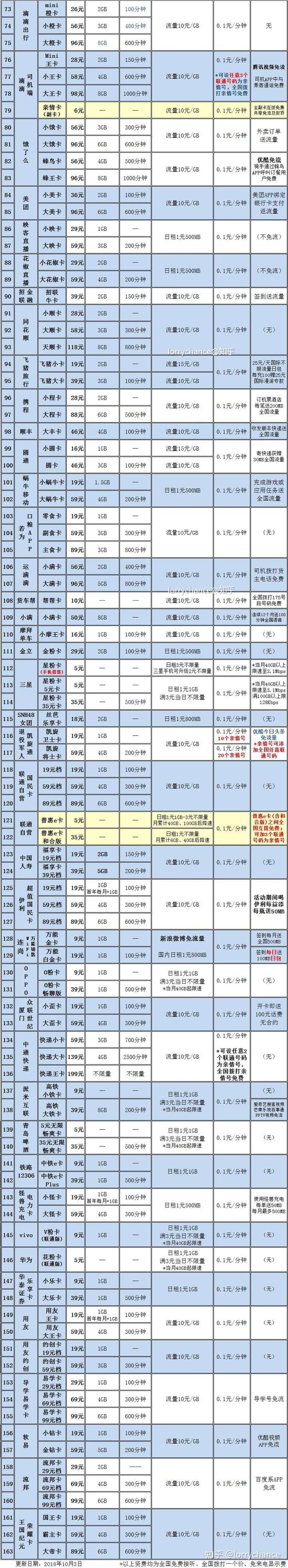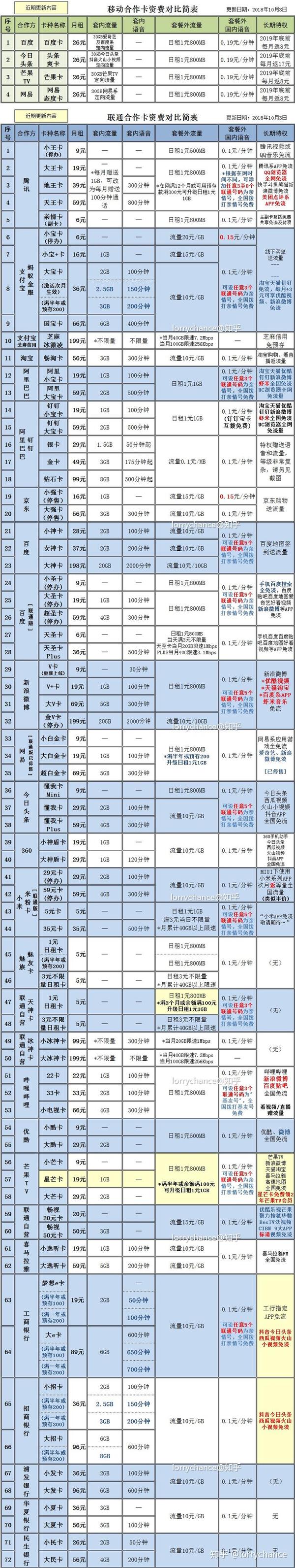 本文附有180余种资费详情介绍。2018.10.3最新更新。