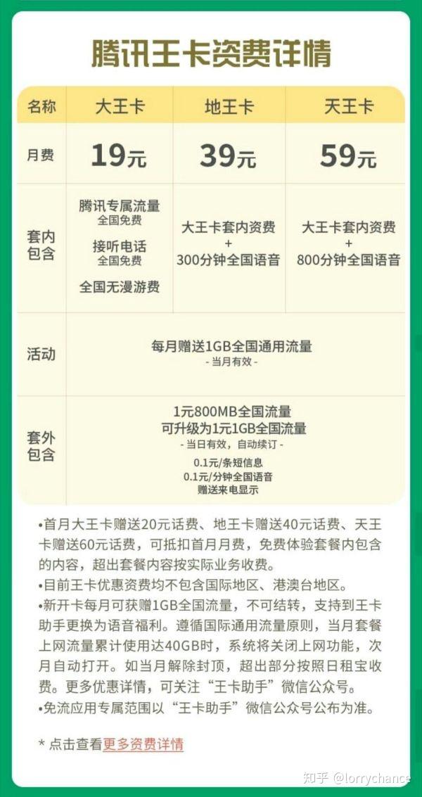 4.联通腾讯大王卡【链接】:月租19元,无套内资源,微信、QQ、腾讯视频、王者荣耀等大量腾讯系APP免流量。2018年6月起开卡即长期赠送每月1GB流量,可以选择转换为每月送100分钟通话。如果选择赠流量,就可以在享受腾讯系APP免流的同时,用赠送的流量月包覆盖非免流的APP需求。合理控制APP使用的话,只花19元享受免流量也成为可能。