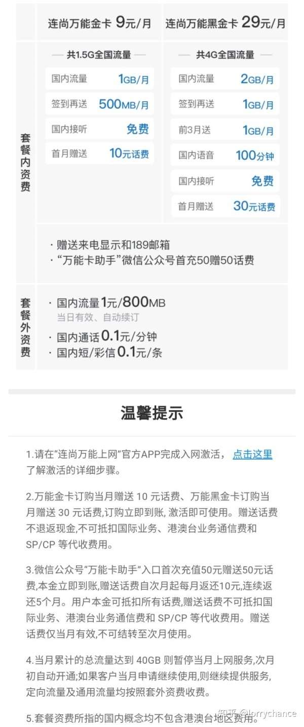 2.连尚万能卡【电信版申请链接】【联通版申请链接】:月租9元含全国1GB,超出后全国日租1元800MB。如果每月使用流量<1GB,9元就能满足需求;而如果放肆点用,只要每天不超过800MB,每月开支最多39元,极端理想情况下能用25GB。因此是高低兼顾、适用面比较广的卡种。
